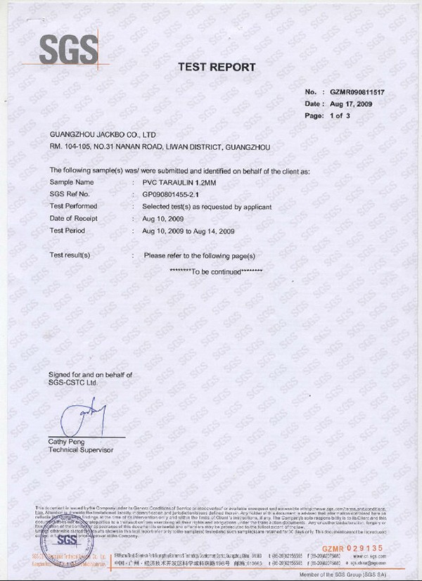 防水膜認(rèn)證證書(shū)-物理性能1